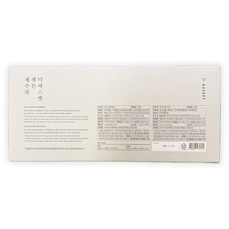 Jeju & Lemon Tea Basketis a premium gift set featuring two unique teas from Jeju:Jeju Lemon Green TeaandJeju Lemon Purple Tea. The box contains 12 teabags in total, with 6 of each variety.